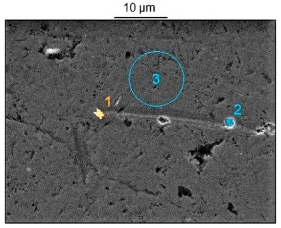 Cam surface in area 2 as shown in Figure 3 with the marked locations of EDS analysis.