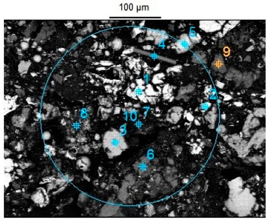 Chemical composition measured in areas by the EDS method according to Figure 8.