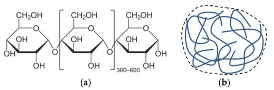 Starch can be derived from a number of different plants—including wheat, potato, corn, rice, and pea—and food waste [35,36]. It consists of a number of glucose rings joined together by oxygen side-chain bonds, shown in Figure 2. Depending on the source plant, starch is typically composed of 20–25% amylose and 75–80% amylopectin [35]. To save on processing costs, flour is typically used as the binder, which contains 85–95 wt% starch. Tabil et al. found that an addition of only 0.5 wt% pea starch significantly increased the durability of alfalfa feed pellets [37]. Kuokkan et al. found that the addition of 1% potato flour increases pellet durability from 96.5% to 98% compared to binder-free wood pellets [35]. They also found that the addition of potato flour did not significantly increase the biological degradation of the pellet. Margl and Kiefer produced a raw wood pellet, 11–14 wt% moisture, using a corn flour binder, 1–5 wt%, and found improved abrasion resistance [38]. Tapioca starch and corn starch have a low cost. Tapioca starch increases the strength of briquettes more than corn starch due to its higher lignin content. The addition of tapioca starch solution to biomass at a ratio of 100:20 (TS1) provides the highest fixed carbon content (56.94), lower volatile matter (26.42), and lower ash content. It is able to increase the HHV of biomass by 30% [39].