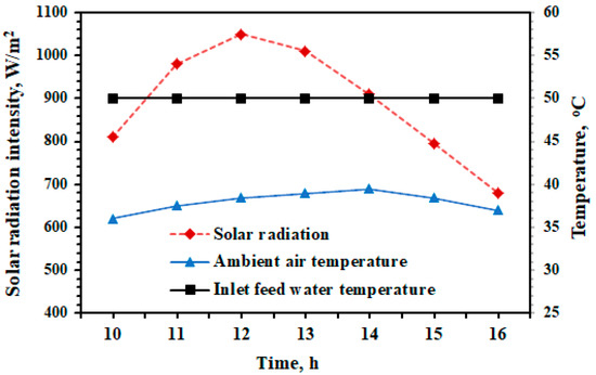 Variations of sunrays, ambient temperature, and feed water temperature.