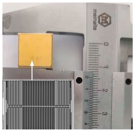 The near-end electric-field integration method calculates voltage through the electric-field data of the discrete integration node. Therefore, it is crucial to accurately measure the electric-field intensity at the integration node. Due to the limited space inside the device, the size and power consumption of the sensor need to be low enough; however, the existing advanced microelectric-field sensor technology provides a solution to this problem. In this paper, a MEMS electric-field sensor is exploited to measure the electric field at the node. The image of the MEMS electric-field sensor used in this study and the microstructure of the internal MEMS chip are shown in Figure 7, where the yellow one is the packaged MEMS electric-field sensor and the part pointed by the white arrow is the microstructure of the internal MEMS chip. Encapsulated MEMS electric-field sensors are insensitive to meteorological and environmental factors and have been used for atmospheric electric-field measurements at high altitudes [27]. The sensor adopts a MEMS chip of field grinding electric-field sensor, which is encapsulated by ceramic material. The measurement range of the MEMS is higher than ±100 kV/m, the resolution is up to 15 V/m, and the accuracy is higher than 2%. The sensor is powered by a ±5 V DC power supply.