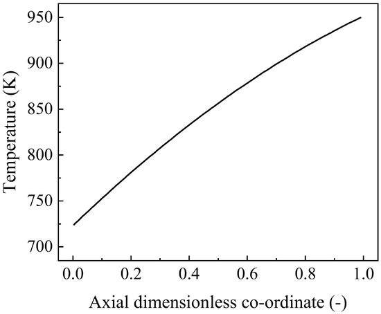It should be noted that the simulation of the combustion channel was not performed simultaneously in this study. The temperature distribution along the surface of the combustion catalyst was consistent with Figure 2, as required by our partners, and this temperature distribution was derived from a real industrial reformer.