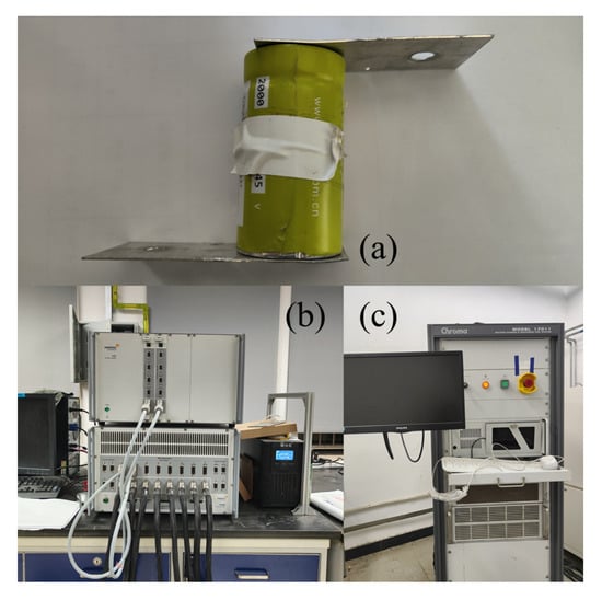 Materials and experimental equipment. (a) One of the LTO cells used in this study; (b) Chroma 17011 Battery test bench; (c) Solartron electro-chemical workstation.