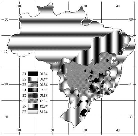 Brazilian bioclimatic zones. Reprinted with permission from ref. [18]. Copyright 2005 Associação Brasileira de Normas Técnicas (ABNT).