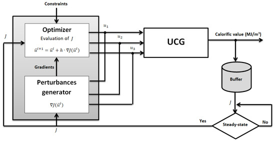 A model-free extremum seeking control based on perturbations was experimentally tested to optimize several manipulation variables [31]. A perturbation signal at the system input and observing its effect on the output can be used to estimate the objective function. In the case of the optimization of three UCG manipulation variables, the following vector was defined [80]: