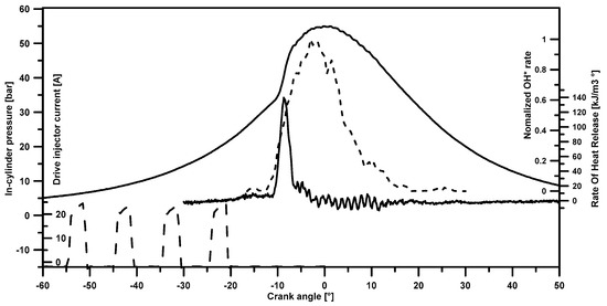 - Collin, R.; Nygren, J.; Richter, M.; Aldén, M.; Hildingsson, L.; Johansson, B. Simultaneous OH and formaldehyde-LIF measurements in an HCCI engine. SAE Trans. 2003, 112, 2479–2486. [Google Scholar]