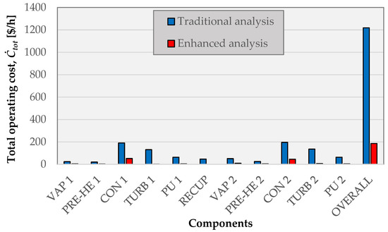 - While the total operating cost is 1218 USD/h for the TradExEcon analysis, with a decrease of 85% as a result of improvements with the AdvExEcon analysis, it becomes 186 USD/h.