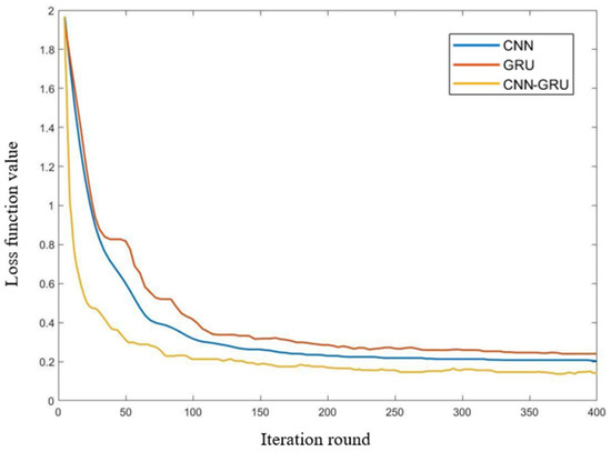 The comparison of results in Table 3 shows that both the training performance and prediction accuracy of the CNN–GRU model were significantly superior to those of the CNN and GRU models. By the time the iteration reached 120 rounds, the loss function value of the CNN–GRU model was reduced to below 0.12. Additionally, the RMSE value of the CNN–GRU model on the test set was 0.4472. The above results fully demonstrate that the CNN–GRU model has better performance in processing multi-dimensional and time-series data, and can be selected as the data-driven model for the online control method of reactive power and voltage.