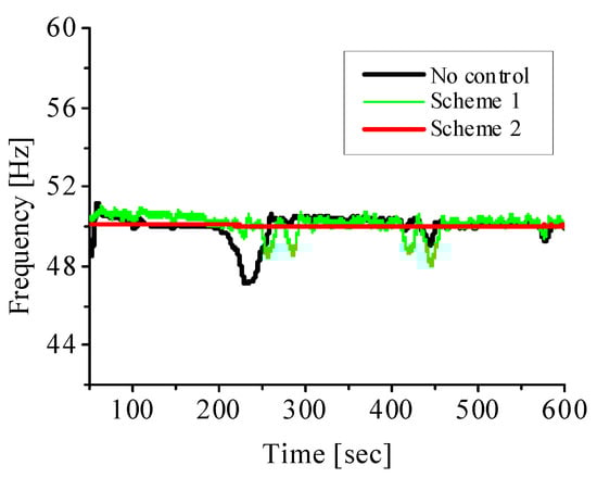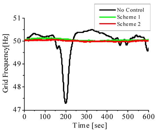 However, the grid frequency response was improved using Scheme 1, but the distortions were not totally eliminated. The implementation of Scheme 1 is less expensive than Scheme 2. This is because, apart from stabilizing the grid frequency, Scheme 1 has the additional benefit of generating power to the grid, compared to the expensive external unit of Scheme 2.