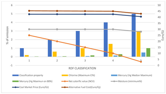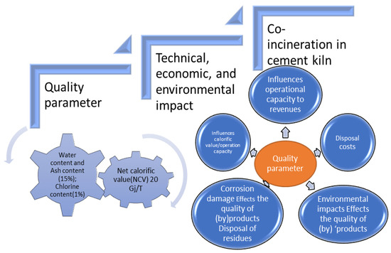 Previous studies have assessed the factors that contribute to low interest of co-processing in cement plants, as well as national and regional legislation, economic viability, industry perspective, and business models [15]. For instance, in Algeria, one of the strategies identified to properly manage MSW with subsequent environmental and general public health protection is the conversion to RDF. The RDF can then be utilized as an substitute fuel, saving 4347.7 tons of natural gas and 0.3 Mt of CO2 emissions, with a net gas cost savings of 65 USD [16].
