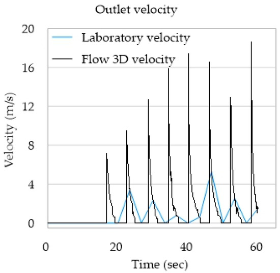 Laboratory and Flow 3D velocities at the outlet.