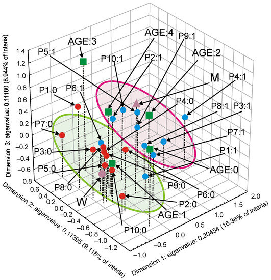 In recent years, multiple correspondence analysis has become increasingly popular in a variety of scientific disciplines, especially in medical and economic sciences. Regarding medical sciences, the usefulness of this method has been demonstrated in epidemiology [64], where it enabled in-depth research on epidemics of malaria [65,66]. Moreover, it has allowed researchers to achieve interesting results in the scope of cognitive aging [67]. It has also been used in studies on nonlinear relationships of the motor cortex and basal ganglia [68], and proved helpful in the identification of behavior patterns associated with overweight and obesity in adults [69]. In economic sciences, the multiple correspondence analysis is helpful in studying such issues as financial inclusion [70,71,72,73], multidimensional poverty [74,75,76,77], measuring the circular economy [78], and emergencies [79]. Based on results achieved with this method, the classification of residential electricity consumers has been developed [80]. Furthermore, this statistical method has considerable application potential in social sciences [81]. One interesting example is its use in exploring Nobel Prize data involving four categorical variables: the country of birth or residence of the laureate, the scientific discipline, the period in which the Nobel Prize was awarded, and the gender of the laureate [82]. Multiple correspondence analysis is also helpful for analyzing opinions of students about their school [83]. Moreover, it provides interesting knowledge on attitudes of Americans to life according to their marital status, people’s opinion on abortion according to their religion and education, and association patterns developed by a mother and her infant during the first six months of life [84].