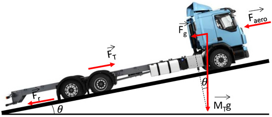 The vehicle forces are calculated following the energy balance equation presented in Equations (1) and (2) with forces represented in Figure 3.