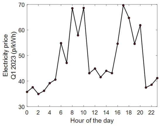 Since 2021, there has been a sharp increase in electricity prices, with global gas prices and wholesale electricity prices quadrupling within the last year. For the WMD, the cost of electricity has been estimated considering the average electricity price in the non-domestic sector published by BEIS [55]. BEIS publishes average quarterly and annual electricity prices based on two surveys conducted across energy suppliers and non-domestic consumers. The depot in this study is in the ‘small consumption’ band, according to the classification from BEIS. For this band, the electricity price rose by 63% to 25 p/kWh between Q3 2021 and Q3 2022.