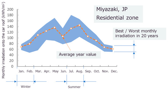 - Ota, Y.; Masuda, K.; Araki, K.; Yamaguchi, M. A mobile multipyranometer array for the assessment of solar irradiance incident on a photovoltaic-powered vehicle. Sol. Energy 2019, 184, 84–90. [Google Scholar] [CrossRef]