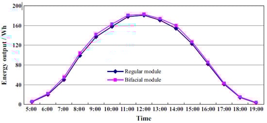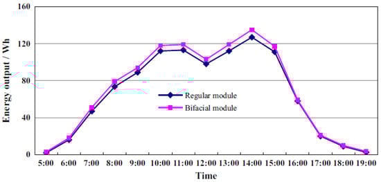 Comparison of energy output between a bifacial module and a regular module on a sunny day [27].