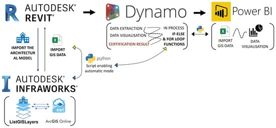 Both of the adaptive reuse evaluation tools described above do not involve the use of digital technologies. Current approaches to support the design, planning, and execution of projects with Building Information Modeling (BIM) allow for defining and evaluating environmental issues and potential improvements of a particular object of study (product, building, etc.) and selecting alternative solutions [], but they are still not widely used to support adaptive reuse interventions [].