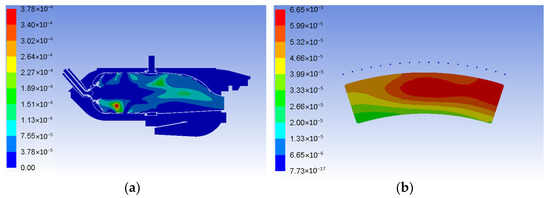 The EDC combustion model includes detailed chemical kinetics with allowance for fluctuating parameters [90,91]. This model considers that the reaction takes place in certain turbulent structures called fine scales. To calculate the speed of the chemical reaction, it is necessary to determine: (a) the time scale and (b) the volume fine-scale.