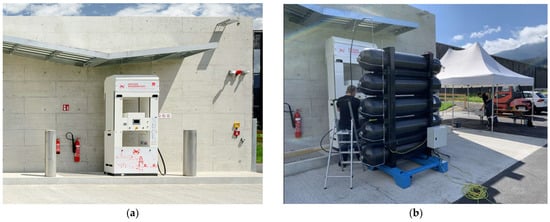 53], developed since 2019 as part of the regional green hydrogen economy and led by FEN Systems, a mobile hydrogen refueling system (mobileHRS) equipped with both 350- and 700-bar refueling hoses were developed by Schmidberber/EDC/Wolftank and commercialized to further supply snow groomers from project partner Kässbohrer with green hydrogen from the region.