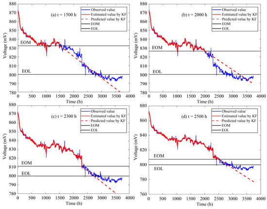 - Mo, B.; Yu, J.; Tang, D.; Liu, H. A remaining useful life prediction approach for lithium-ion batteries using Kalman filter and an improved particle filter. In Proceedings of the 2016 IEEE international conference on Prognostics and Health Management (ICPHM), Ottawa, ON, Canada, 20–22 June 2016; pp. 1–5. [Google Scholar]