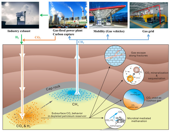 - Xiong, Y.; Hou, Z.; Xie, H.; Zhao, J.; Tan, X.; Luo, J. Microbial-mediated CO2 methanation and renewable natural gas storage in depleted petroleum reservoirs: A review of biogeochemical mechanism and perspective. Gondwana Res. 2022; in press. [Google Scholar] [CrossRef]