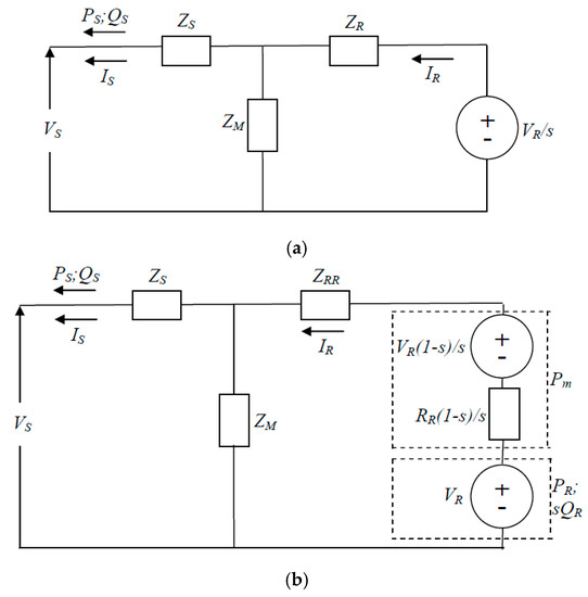 - Feijoo, A.; Villanueva, D. A PQ model for asynchronous machines based on rotor voltage calculation. IEEE Trans. Energy Convers. 2016, 31, 813–814, Correction in IEEE Trans. Energy Convers. 2016, 31, 1228. [Google Scholar] [CrossRef]