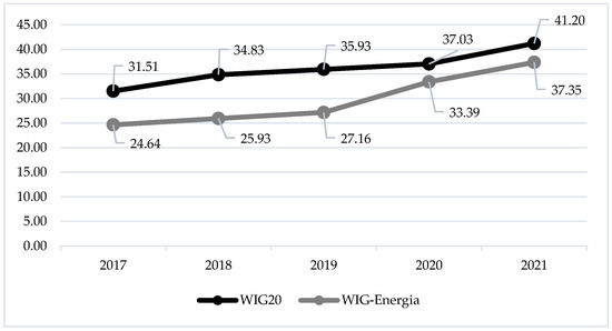 The sample was selected on a targeted basis, and it included selected companies making up the WIG-Energia index. The pre-requisite for being included in the research sample was by publishing non-financial reports in the years 2017–2021, for this reason not all the companies who were part of the WIG-Energia index were covered by the study. Moreover, three companies composing the WIG Energia index were at the same time qualified to be part of the WIG20 index (Tauron and PGE in 2017–2021, Energa in 2017–2018). The main characteristics of the research sample are contained in Table 4.
