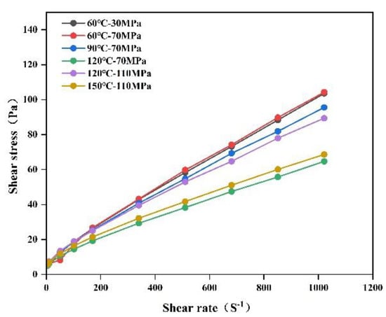 The Herschel-Buckley equation (H-B) is also called the power-law equation with gel strength. The equation is a three-parameter model. Although the values of and are different from those of fluids obeying the power law, they have the same meaning. As Equation (3) is a transcendental equation with three undetermined coefficients, according to the function approximation principle, for more undetermined coefficients in the approximation function, the degree of approximation is higher. As the Herschel-Buckley equation has better adaptability for low, medium, and high shear rates, it has greater advantages over the Bingham equation and the power-law equation.