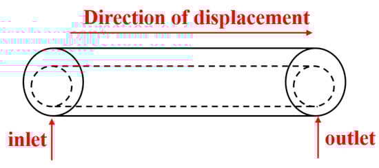 Under the influence of gravity and the casing running process, the casing of horizontal wells has serious eccentricity issues. In this study, we established a physical model based on a wellbore in a horizontal section. The model is shown in Figure 4. The relevant parameters are as follows: length of the horizontal section is 30 m, dimension of the borehole is 215.9 mm, casing dimension is 139.7 mm, and the eccentricity is 0.6. ANSYS/FLUENT software was used to solve the flow field.
