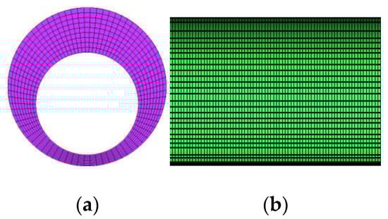 In addition, the creation of the computational model and the meshing is very important for the accuracy of the computation [25,26,27], and we have adopted a local grid encryption to mesh the created model as shown in Figure 5 below.