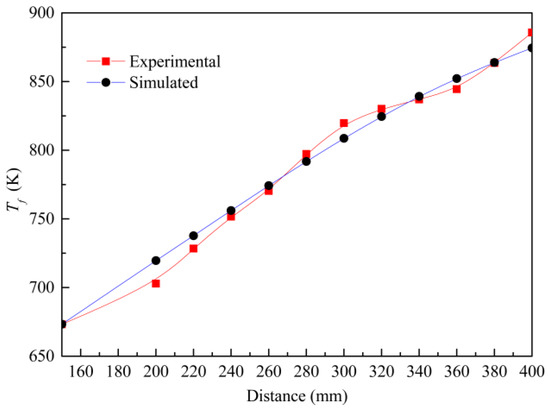 The experimental results provided by Zhou et al. [17] were used to verify the model. The experimental conditions are listed in Table 4. Table 5 shows the comparisons of the unreacted n-decane mass content and fluid temperature at X = 400 mm. The relative errors of the fluid temperature and the unreacted n-decane mass content were 1.26% and 0.54%, respectively.