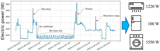 Among the various measures for energy saving, energy disaggregation, also called nonintrusive load monitoring (NILM), is the process of estimating individual loads of facility systems by using the total electric power consumption measured by a household power monitor [3]. In other words, energy disaggregation investigates detailed information on appliance-specific or usage-specific energy consumption from the total energy usage. According to Darby, when the energy disaggregated results were posted for users, the energy use efficiency improved by about 15%, and 81% of users answered that the information was useful [4]. Therefore, this energy disaggregation shows the user that it is more effective to save energy by posting the power usage per appliance rather than the total power usage.