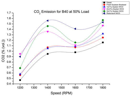 CO2 of fry biodiesel B40 blends at various speeds at 50% load.
