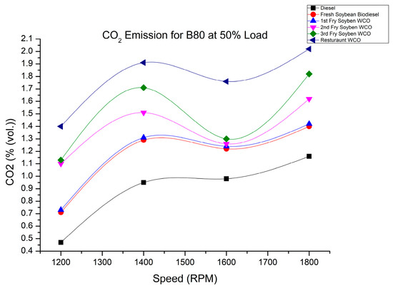 CO2 of fry biodiesel B80 blends at various speeds at 50% load.