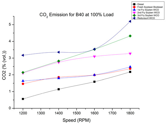 CO2 of fry biodiesel B40 blends at various speeds at 100% load.
