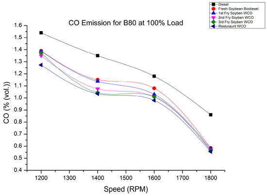 CO variation of fry biodiesel B80 blends at various speeds at 100% load.