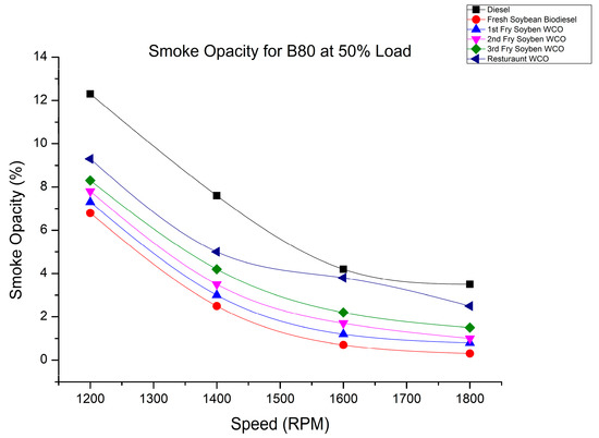 Smoke variation of fry biodiesel B80 blends at various speeds at 50% load.