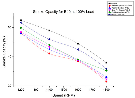 Smoke variation of fry biodiesel B40 blends at various speeds at 100% load.