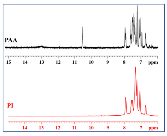 Comparative 1H-NMR spectra of PAA and of the corresponding PI.