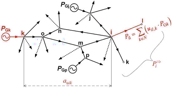 As mentioned above, the total power flow in the i-l branch is the sum of the products of the power generated in the selected sources and their share factors. Detailed considerations of this subject have been presented in the literature [16,68,69].