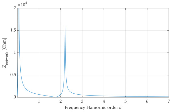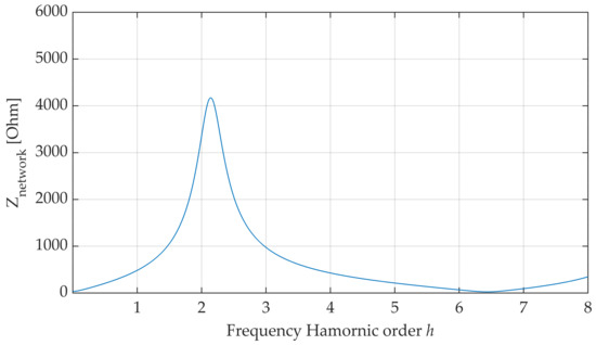 Thus, to investigate the cause behind this strong harmonic content, it was worth analyzing the network impedance as a function of the harmonic order, as shown in Figure 5.