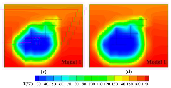 Temperature field distributions of the EGS at different times: (a) 5 years, (b) 10 years, (c) 20 years, and (d) 30 years.