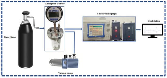 We used a self-developed coal adsorption device in the adsorption experiment, as shown in Figure 1. To simulate the concentration of CO2 in the flue gas of a power plant, the CO2 concentration in the adsorbed gas was set to approximately 16%. To eliminate any interference from other gases in the flue gas, we used Ar as the mixed background gas.