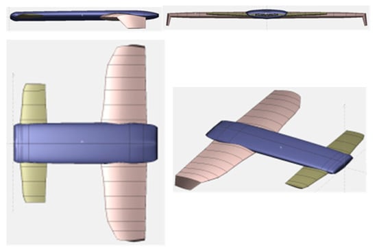 In order to improve the global lift of the UAV, a lifting fuselage configuration was adopted, with a “T” section, as shown in Figure 4.