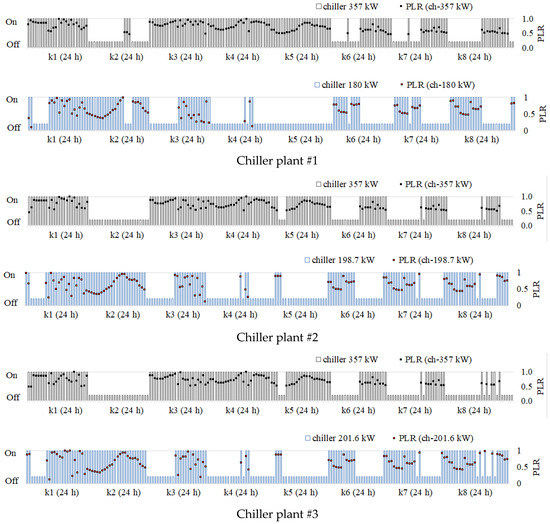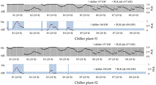 The value of the PLR variable in Equation (20) determines the on/off status, which is a difference between the individual chiller staging and the strategy shown in Section 2.2.