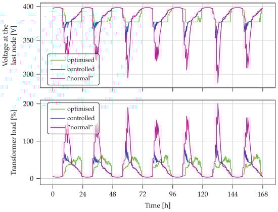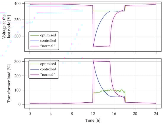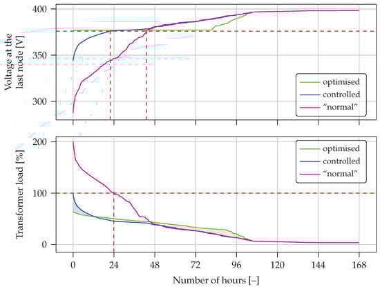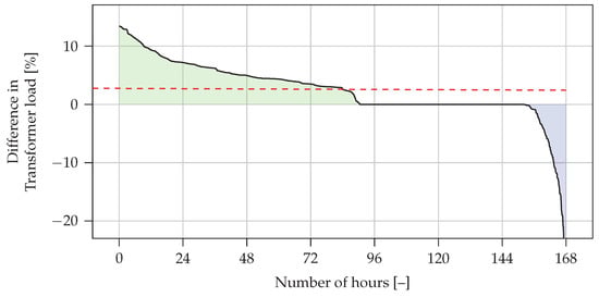 Results of optimisation for Scenario 3—difference between sorted timelines for transformer load in the case of optimisation and control.