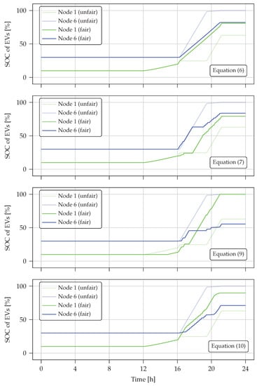 The start SOCs of the respective EVs: ;