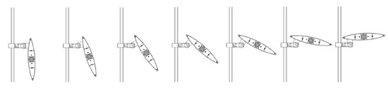 The PPV façade is dynamic, and the slats move in the angular range from 0 to 90 degrees. The 0-degree angle corresponds to the horizontal position of the slats (open façade), and the 90-degree angle corresponds to the vertical position (closed façade—theoretically complete cut-off of sunlight penetrating inside the building). The full range of movements can be seen in Figure 4.