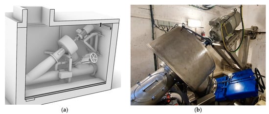 Small HPP Podhora: (a) tailor-made concept that fits into the existing chamber; (b) final realization on-site.
