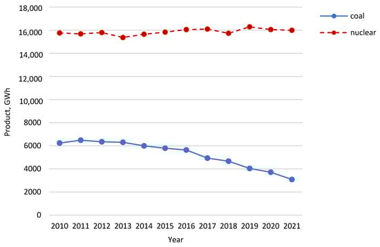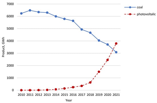 Hungary’s gross energy consumption was 309,270 GWh in 2010, which later decreased slightly and amounted to 304,003 GWh in 2020. It is a welcome fact that coal consumption decreased by 37.7% between 2010 and 2020, from 31,439.55 GWh to 19,573.34 GWh, which significantly contributes to Hungary’s international commitment to carbon dioxide reduction. Among the Central and Eastern European countries, Slovakia and Hungary belong to the group of countries that are moving away from coal as an energy source. Moreover, Hungary has announced that it will close its high-emission coal-fired power plants by 2030 [72].